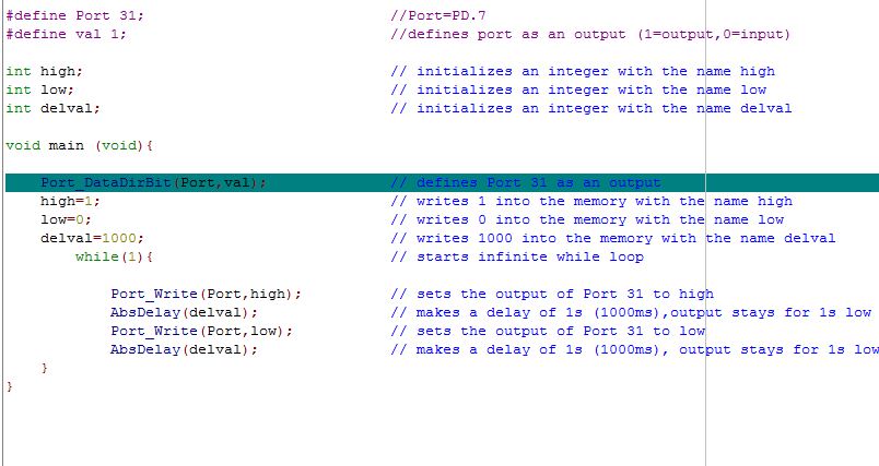 will ganz einfach ein Port ansteuern als Ausgang mit angehängtem code.