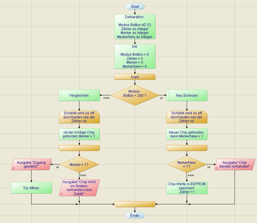 > > > > > > > > > Hallo, > > > > > > > > > Ich nutze in für mein Schulprojekt das C-Control Pro > > > > > > > > > Application Board, dass uns von unserem Lehrer bereitgestellt > > > > > > > > > wurde. > > > > > > > > > Da wir allerdings keinerlei Einweisungen bekommen haben > > > > > > > > > bin ich somit absolouter Anfänger bin > > > > > > > > > möchte ich fragen wo man einen Servo an das > > > > > > > > > besagte Application Board anschlie�t. > > > > > > > > > > > > > > > > > > Ich bedanke mich schon mal im vorraus und habt > > > > > > > > > bitte Verständnis für > > > > > > > > > meine mangelnden Kenntnisse :D > > > > > > > > > > > > > > > > Du kannst einen Servo an einen beliebigen freien Port anschlie�en. Achte aber > > > > > > > > darauf dem Servo eine eigene Spannungsversorgung zu geben, das Application Board > > > > > > > > ist für diese Belastung nicht ausgelegt. In den Demoprogrammen findest Du auch ein > > > > > > > > Beispiel für die Servoansteruerung. > > > > > > > > > > > > > > > > Gruss Peter > > > > > > > > > > > > > > > > > > > > > Hm ja dankeschön aber soweit war ich auch schon > > > > > > > also wo ich das braune sowie das rote kabel für die > > > > > > > stromversorgung anschlie�e wei� ich bereits allerdings > > > > > > > müsste ich noch wissen wo ich das orangene zur Programmierung > > > > > > > anschlie�e hab ehrlich gesagt Angst etwas zu zerstören^^ > > > > > > > habe ein standardservo von conrad. > > > > > > > > > > > > und was meinste mit eigener Stromversorgung ? > > > > > > noch mal extern i.wo anschlie�en oder was ? > > > > > > also ich glaube es würde mir helfen wenn ich wüsste wo > > > > > > das orangene Kabel/Ader angeschlossen wird. > > > > > > > Gru� Max > > > > > > > > > > Das orangene Kabel (Impulseingang) mu�t Du an einen freien Port des Applicationboards > > > > > anschlie�en, diesen Port gibst Du dann in Servo_Set() an. Die Stromversorgung des > > > > > Applicationboards wird durch den Servo mit hoher Wahrscheinlichkeit überlastet, Du > > > > > solltest den Servo deshalb über ein eigenes Netzteil mit Strom versorgen. > > > > > > > > > > Gruss Peter > > > > > > > > Guten Morgen > > > > Ich bin auch im Projekt von MaxMega128 und wollte fragen, da wir wirklich von nix eine ahnung > > > > haben weil die programmier sprache uns auch total fremd ist, wir wurden da wirklich einfach > > > > ins kalte wasser geschmissen und im internet findet man ja nix dazu nur zum Probot, und da > > > > wollte ich mal fragen ob jem ein Beispiel programm hat nur um den servo anzusteuern > > > > > > Max und Du sollten hier erstmal mitteilen was ihr genau machen sollt. Das Hauptproblem > > > bei solchen Anfragen ist, das hier meist nur die Hälfte der Infos in den Raum geworfen > > > werden. > > > > > > 1) Was genau soll das Projekt machen? > > > 2) Ihr habt alle ein Application Board Mega128 mit USB Anschlu�? > > > 3) Welche Sprache wollt ihr nutzen C oder Basic? > > > 4) Welche Version der Software habt ihr? > > > > > > Es gibt ein Demo für Servos im Handbuch, und es gibt ein Demo im Verzeichnis > > > der Demoprogramme für beide Sprachen in deutsch und englisch. > > > > > > Gruss Peter > > > Hallo Max, > > Hallo Peter, > > Aufgrund einer Seminarfahrt und so weiter konnte ich dir nicht so schnell antworten. > > Die Projektabgabe ist ziemlich nahe und wir haben ehrlich gesagt kaum etwas hinbekommen aufgrund > > der unvertrauten Programmiersprache. > --> unvertraute Programmiersprache? könnt ihr kein C? Compact C ist nach meiner Erfahrung > ein neu erfundenes, stark abgespecktes C > > Um deine Fragen zu beantworten: > > 1.) Das Programm soll bei Erkennung des richtigen RFID-Chips mit einem Servo eine Tür in einem > > Puppenhaus öffnen.Habt ihr das konzeptionell gelö�t? Wie meinst du das ? Also ein Puppenhaus und ein Servo haben wir schon. > > > 2.)Unsere Gruppe besitzt ein Application Board Mega 128 mit USB-Anschlu�. Alle anderen Gruppen > > haben ein Applicationboard mit "leichterer Sprache". -.-was soll das sein? > > > 3.)Also die Software die wir zum programmieren nutzen nennt sich C-Control Pro.Das ist eine > IDE, mit dieser können Compact Basic und Compact C Programme geschrieben, übersetzt, > in das C-Control-Board geladen, gestartet und gedebugged werden! > > > > 4.)Die Version ist 2.1 . > > Ich hoffe auf möglichst schnelle Antwort > > Gru� Max > Habt ihr überhaupt was zum laufen gebracht? also z.B. testweise LEDs blinken lassen? > Viele Grü�e > Jo Nun ja, wir haben bereits ein Programm, das ein RFID-Chip einlesen kann jedoch läuft das Programm nicht in einer Schleife. Kennst du dich mit PAPs aus ? Ich häng mal eins dran. Das PAP bezieht sich ausschlie�lich auf das RFID Zeugs. PAP.JPG: | ||
