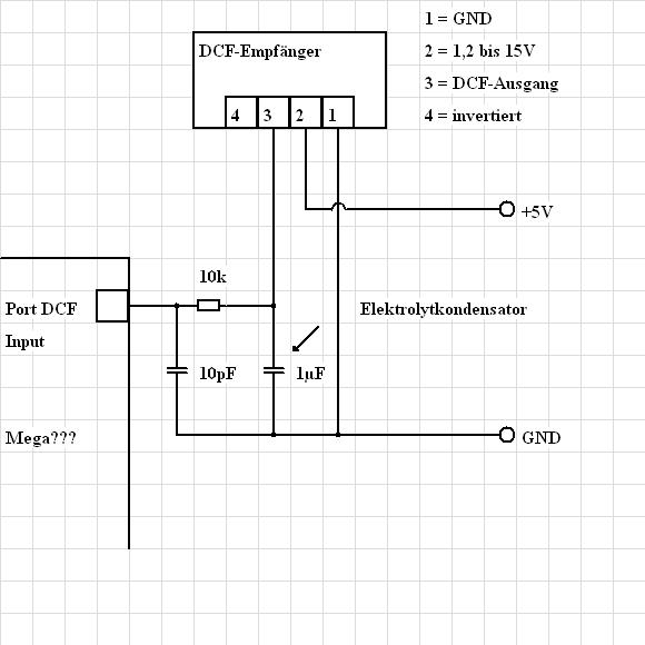> Hi, hab herausgefunden, dass essich um ein TTL-Signal handeln muss,welches die Antenne liefert. > Konnte dieses Signal auch messen, heut früh war dies nicht möglich. Das ist mehr als komisch. Alle Rand- > bedingungen waren exakt so wie jetzt. > Trotzdem kann ich nicht die Uhrzeit durch das Programm feststelle Hallo Felix, mit folgender kleinen Schaltung konnte ich bei mir das Signal verbessern. Torsten DCF77.jpg: ![]() | ||