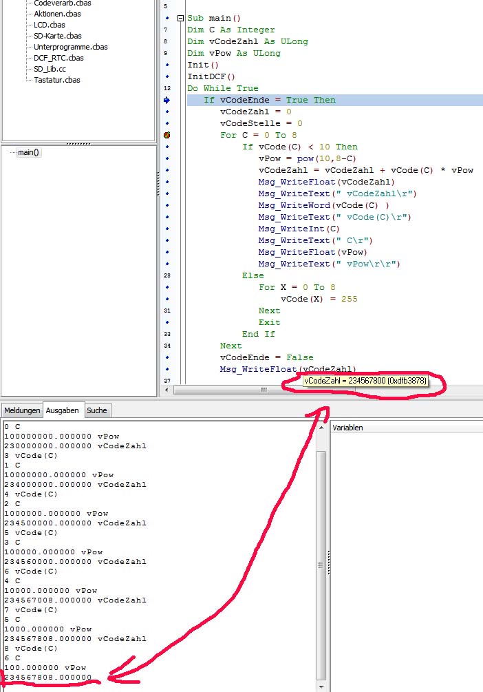 Hallo, Im Testlauf meines Programms ist mir aufgefallen, dass der ausgegebene Wert mit Msg_WriteFloat nicht mit dem tatsächlichen Wert der Variablen übereinstimmt. Siehe Screenshot . Grü�e Max C_Control Pro IDE Fehler.jpg: ![]() | |